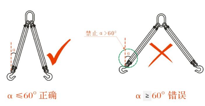 3、成套索具吊裝時,應避免吊裝角度超過60°。