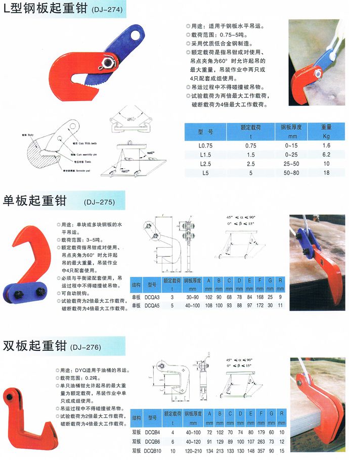 鋼板起重鉗吊起重物時(shí),要非常注意嚴(yán)禁進(jìn)入可能發(fā)生吊物翻倒的起吊范圍內(nèi),由于鋼板起重鉗具有減少夾緊力的結(jié)構(gòu)特點(diǎn),當(dāng)鋼板起重鉗翻倒時(shí),如果工作人員進(jìn)入起吊范圍內(nèi),這樣很容易發(fā)生事故;在安裝鋼板起重鉗時(shí),要確保插入鋼板起重鉗(接觸到開(kāi)口處最深為止),不得插入太淺,如果插入太淺,很容易使夾鉗脫落而發(fā)生事故;同時(shí)在固定鋼板起重鉗夾住重物時(shí),要保證鋼板起重鉗的主體不要傾斜,要保證是吊物開(kāi)口部平行,如果發(fā)現(xiàn)鋼板起重鉗主體傾斜,趕緊松開(kāi)加緊螺栓,調(diào)整鋼板起重鉗主體的位置,然后重新進(jìn)行安裝。
