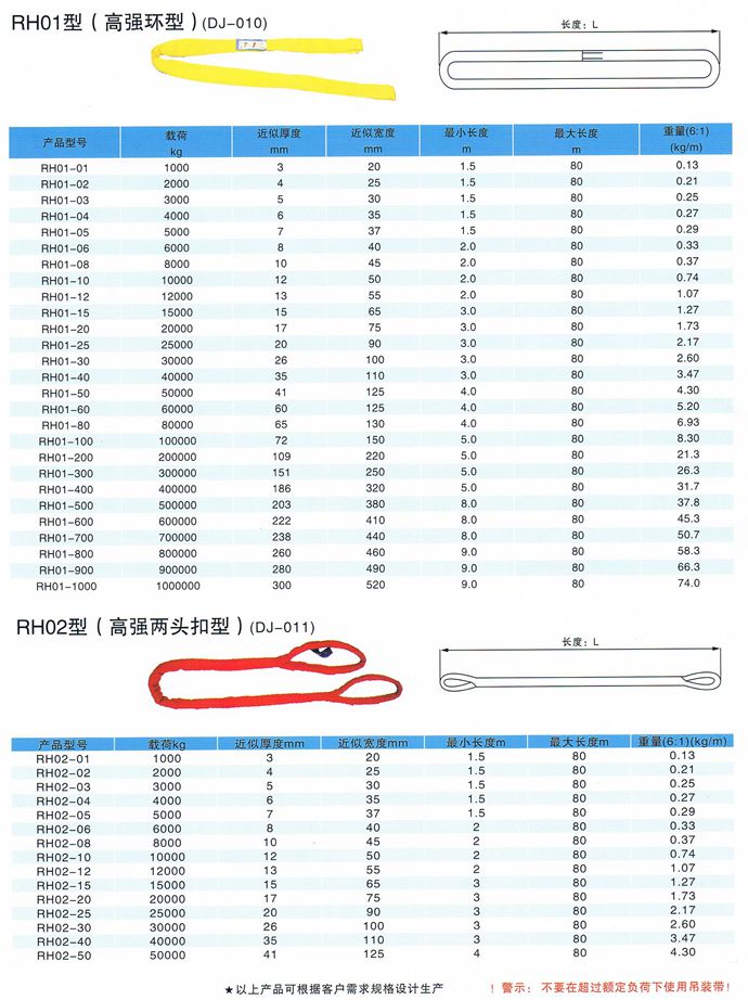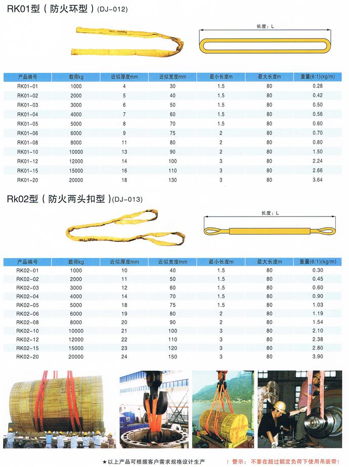 柔性吊裝帶不導(dǎo)電,無觸電危險(xiǎn),柔性吊裝帶是采用PES制成,內(nèi)部承載芯采用無極環(huán)繞以構(gòu)成循環(huán)狀PES織成不受力的套管對(duì)承載芯加以保護(hù)。柔性吊裝帶外表面光滑,對(duì)平滑的物體不會(huì)造成損傷,對(duì)易損物體不會(huì)造成損傷,適用于圓環(huán)形物體的吊裝,柔性吊裝帶負(fù)荷0.5-500噸,有效長度0.5-80米,符合中國行業(yè)標(biāo)準(zhǔn)JB/T8521-2007 ,柔性吊裝帶的彈性伸長較小,工作載荷下< 2%,斷裂載荷下<12% 14、使用的溫度范圍—40℃—180℃。